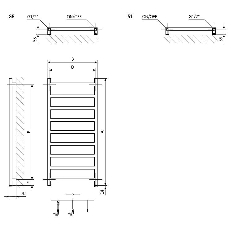 Опис товару - Рушникосушка електрична Terma Simple One 1200x500 WZSIE120050K804S1P, цеглястий