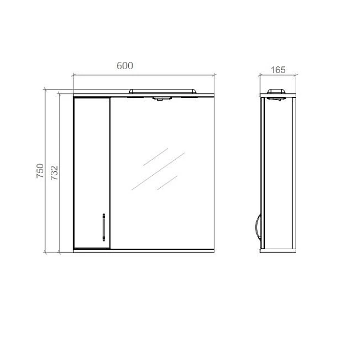 Шафа дзеркальна Mirater Pryama 75х60х17 Біла ліва