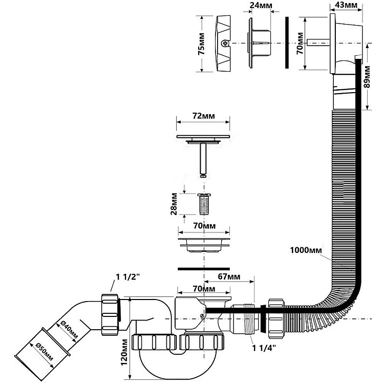 Сифон для ванни автомат Mcalpine HC31M-S2-1M
