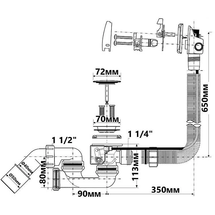 сифон для ванни, з переливом