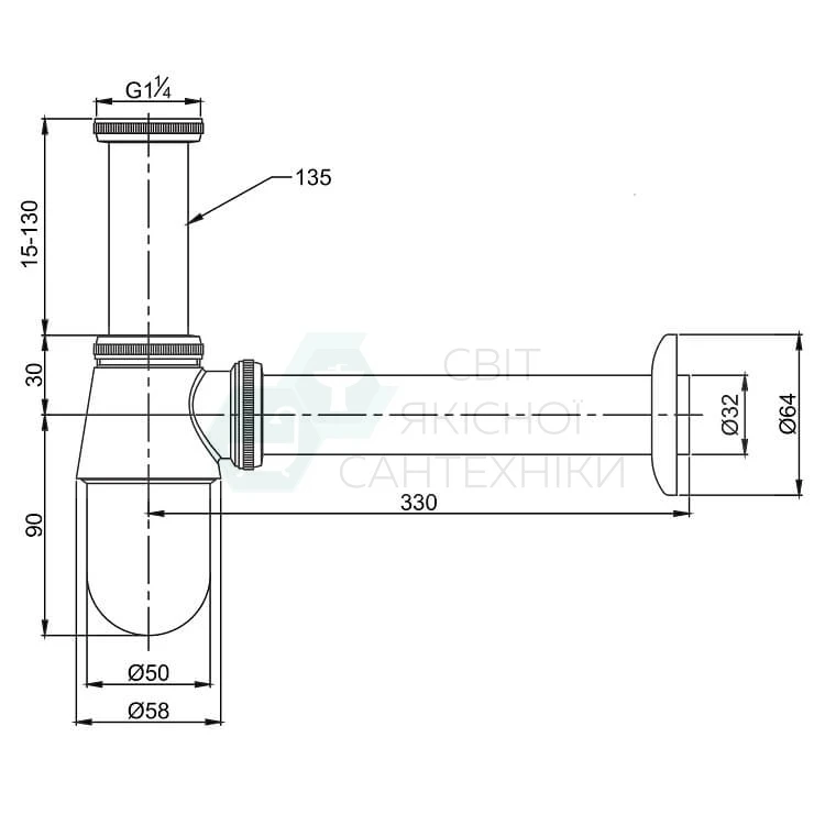 сифон універсальний, сифон для умивальника, сифон для біде