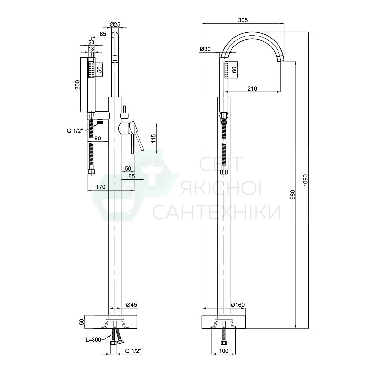 Отримайте AI поради по Змішувач для ванни окремостоячий Q-tap Podlaha 19103UGC хром