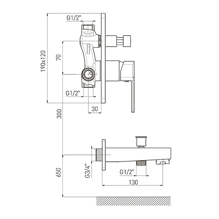Змішувач для ванни з виливом VOLLE SOTA 1538.100301 хром