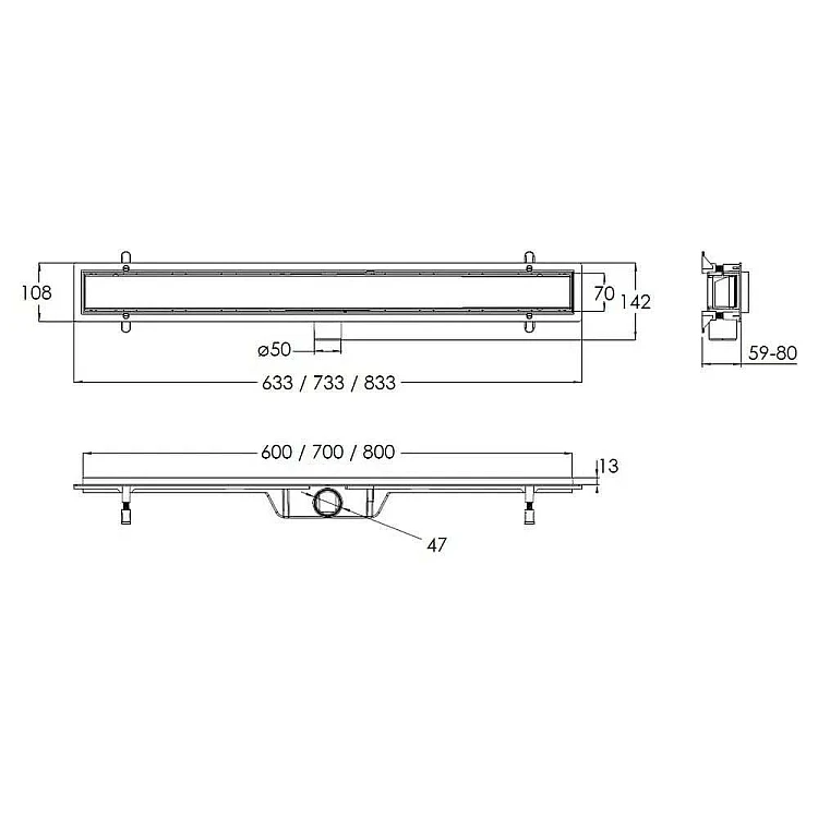 Душовий трап лінійний 800 IMPRESE з цілісною решіткою