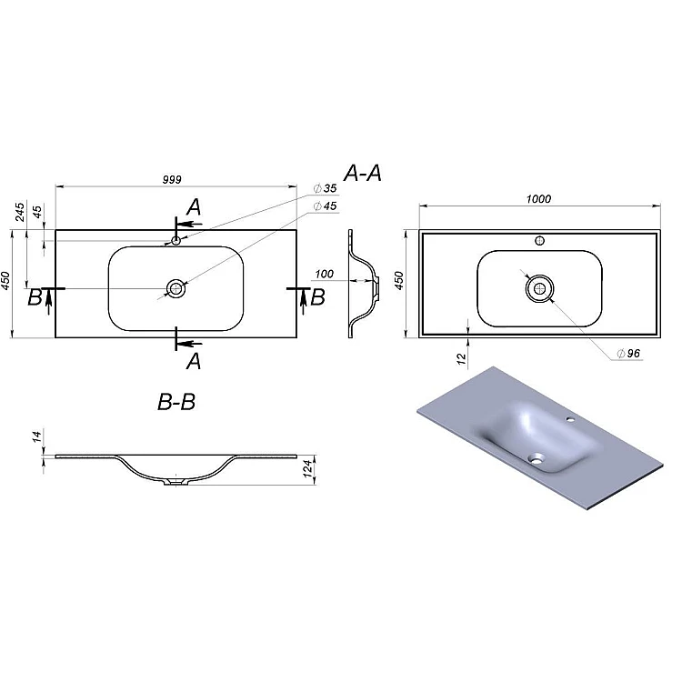 Тумба підлогова з умивальником Koller Pool EDGE NEW 1000