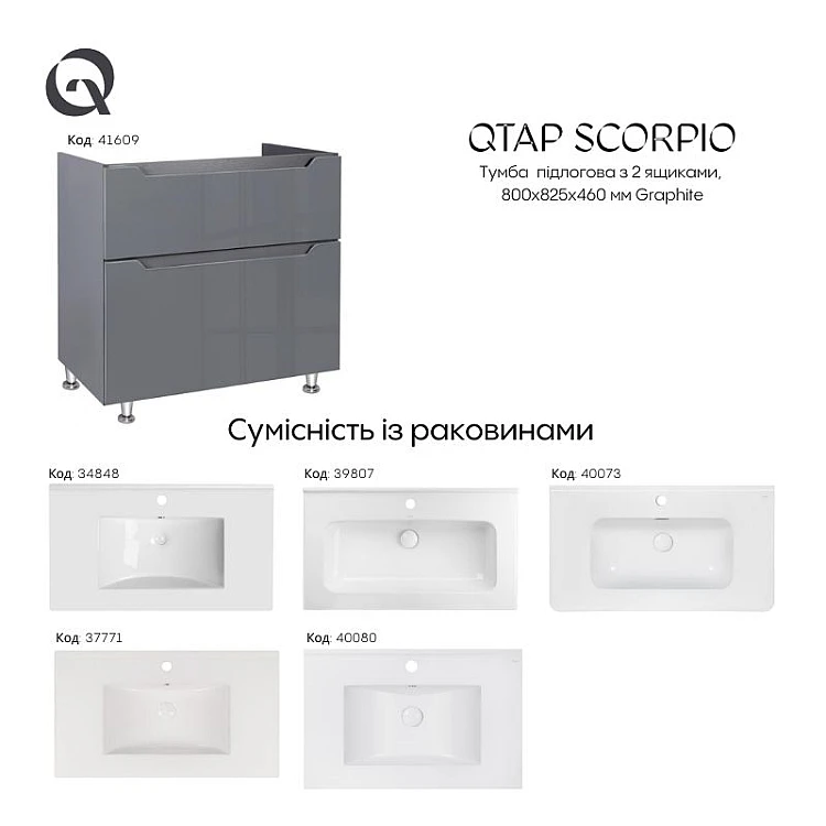 Тумба підлогова Qtap Scorpio 80х46 QT1473TNВ802G графіт