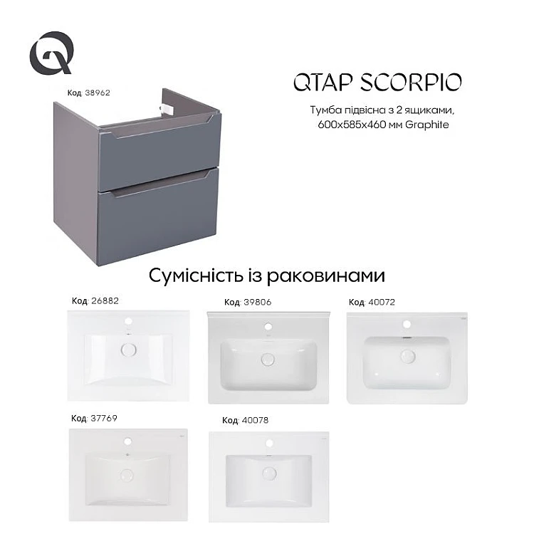 Тумба підвісна Qtap Scorpio 60х46 QT1474TPВ602G графіт
