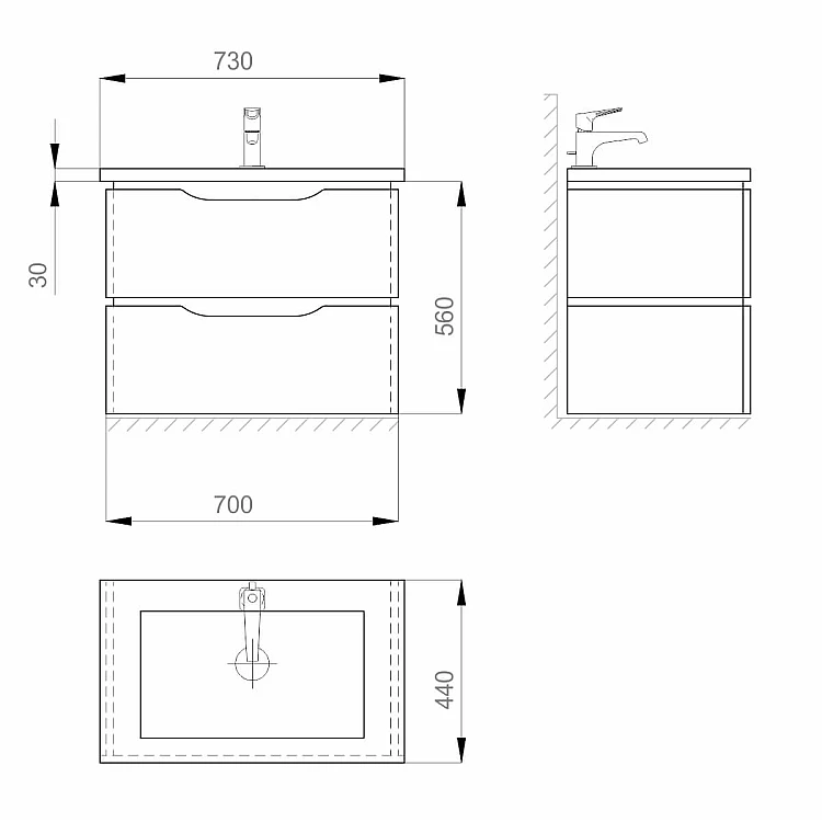 Підвісна тумба з умивальником SANWERK ALESSA AIR 70 MV0000603