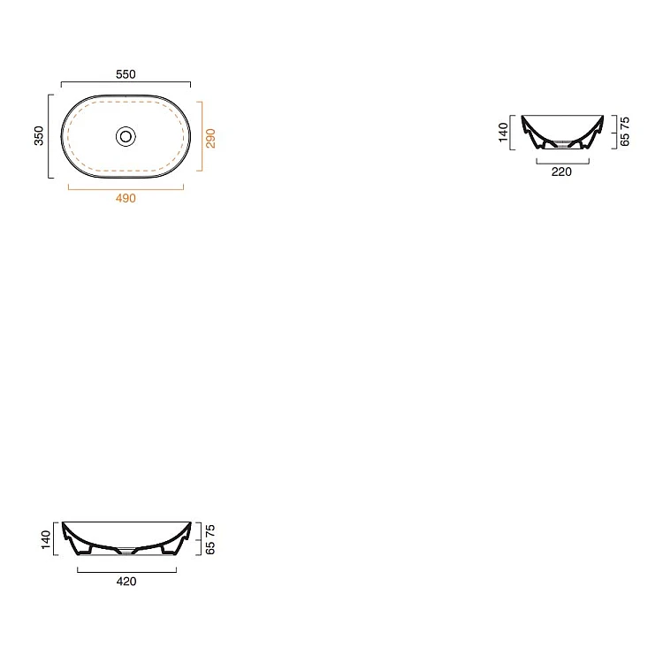 Умивальник на стільницю CATALANO SFERA 55x35 05 2455 0030 lino satinato