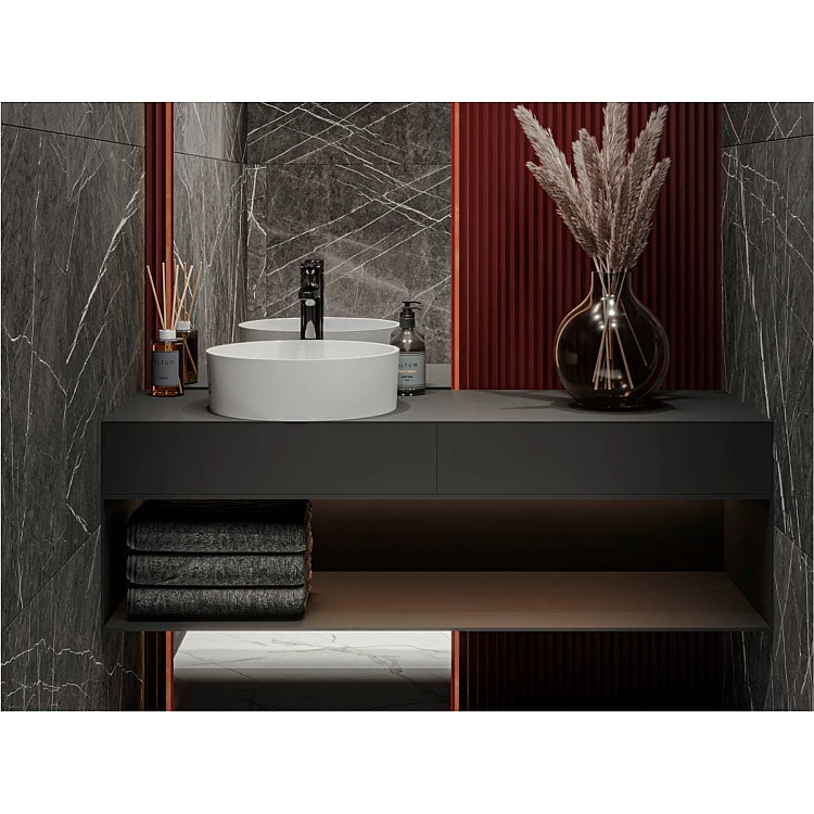Кругла за формою чаша раковина має тип монтажу - накладний, врахуйте це перед замовленням меблів у ванну кімнату.