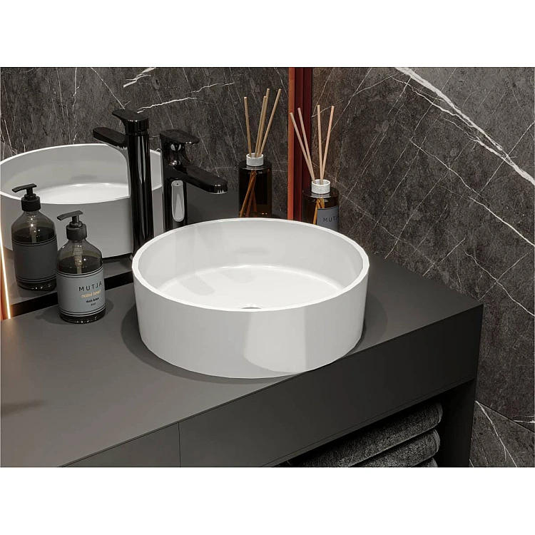 Глянцева раковина зі штучного каменю гармонійно доповнить дизайн сучасної ванної кімнати. Матеріал умивальника - Miramarble.