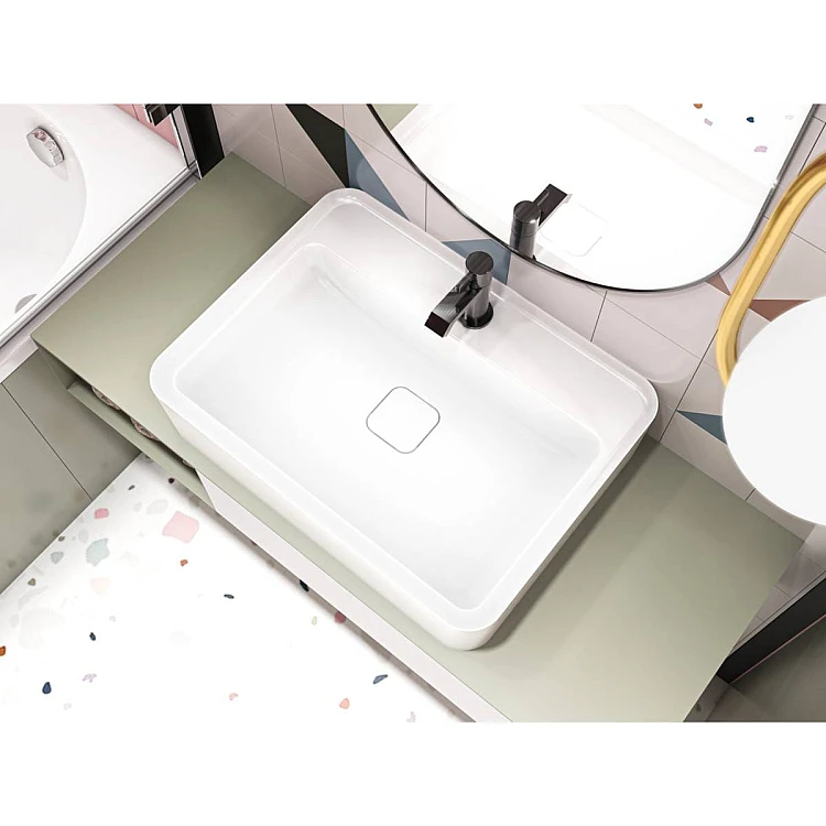 Прямокутна за формою чаші раковина має тип монтажу - накладний;підвісний, врахуйте це перед замовленням меблів у ванну кімнату.