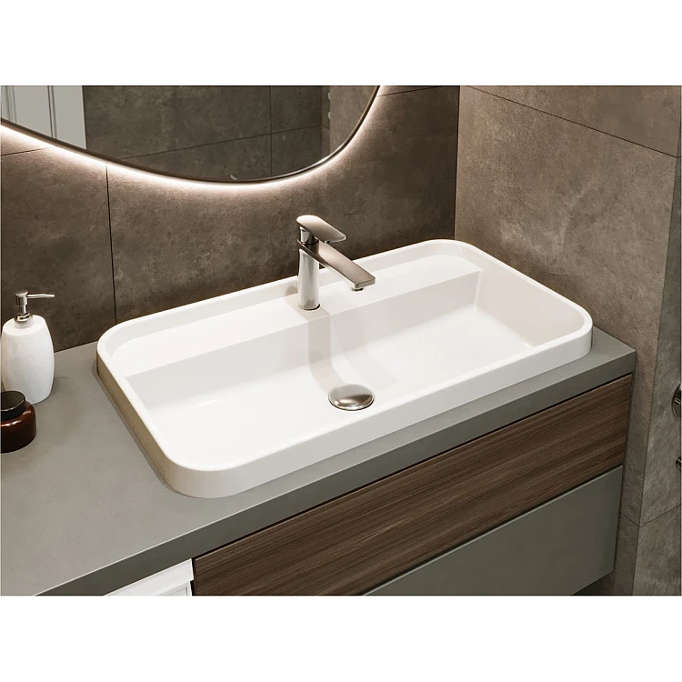 Прямокутна за формою чаші раковина має тип монтажу - накладний;врізний, врахуйте це перед замовленням меблів у ванну кімнату.