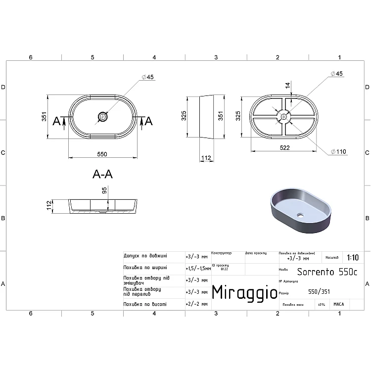 Опис товару - Умивальник MIRAGGIO SORRENTO MIRASOFT білий матовий
