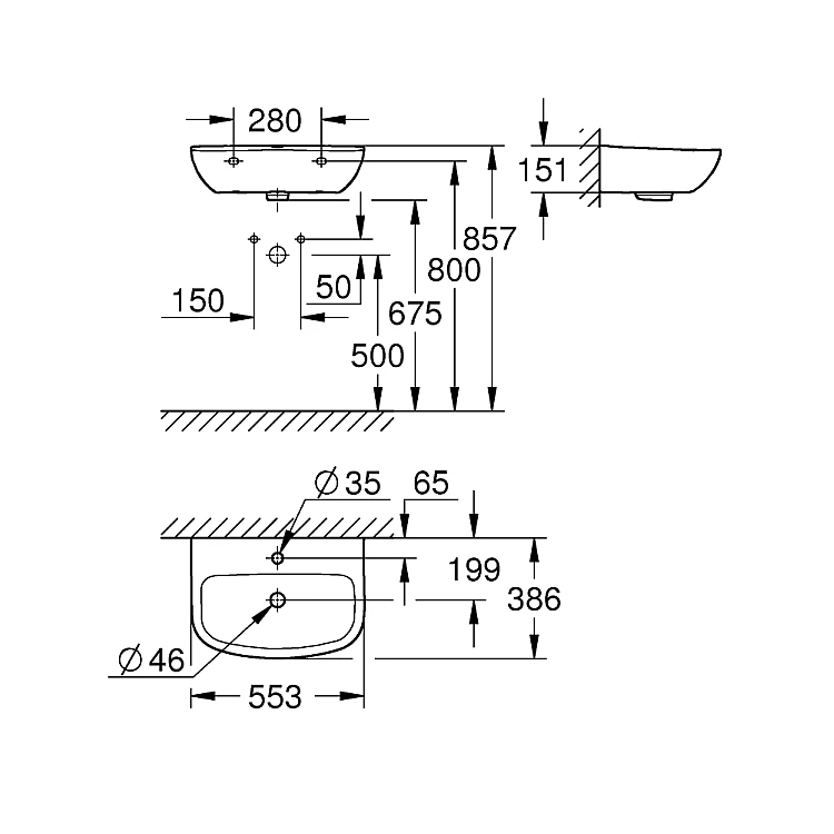 Умивальник підвісний Grohe Bau Ceramic 55 39440000 білий