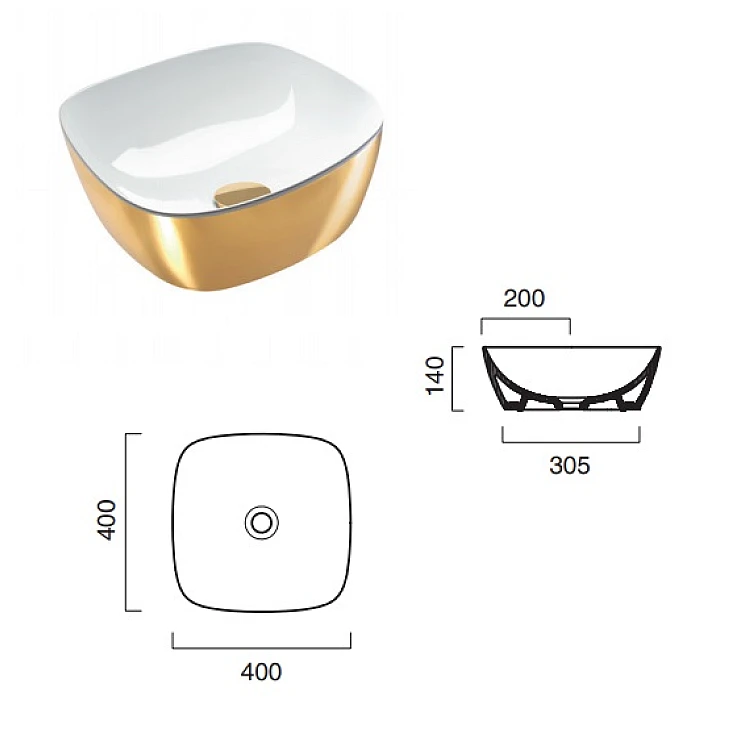 Умивальник на стільницю (чаша) CATALANO GOLD & SILVER 40x40 140APGRLXBO