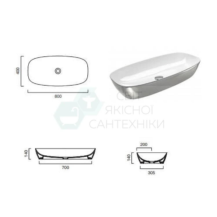 Умивальник на стільницю (чаша) CATALANO GOLD & SILVER 80x40 180APGRLXBA