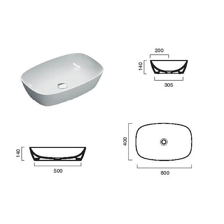Умивальник на стільницю (чаша) CATALANO GREEN LUX 60x40 160APGRLX00