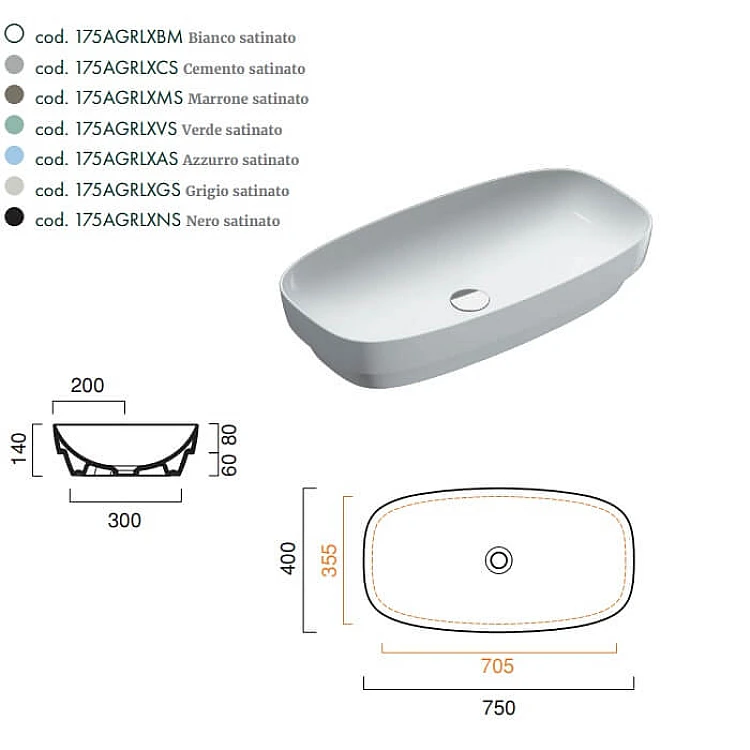 Умивальник на стільницю (чаша) CATALANO GREEN LUX 75x40 175AGRLXVS
