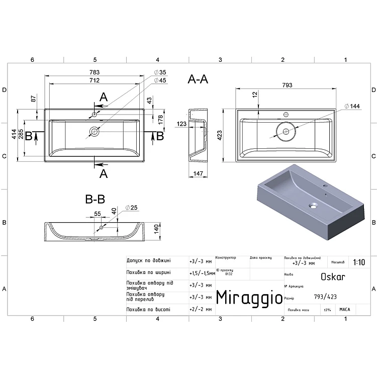 Отримайте AI поради по Умивальник Fancy Marble Oscar 800 8908101 з литого каменю