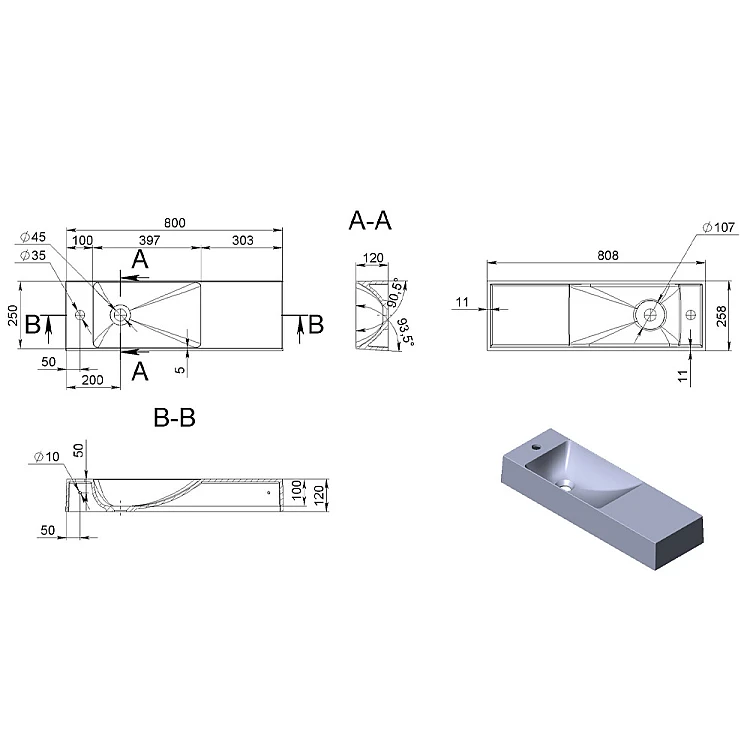 Умивальник Fancy Marble Tristi 800 L/R з литого каменю