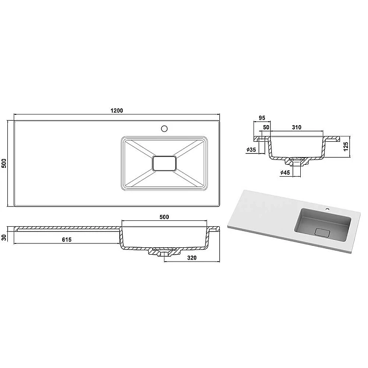 Чорний умивальник на пральну машину Snail «Аляска R» 120x50 (167А200R)