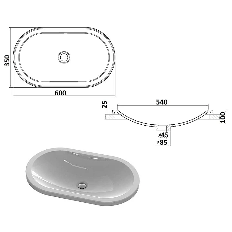 Опис товару - Умивальник Snail «Гера» 60x35 (155А100) білий
