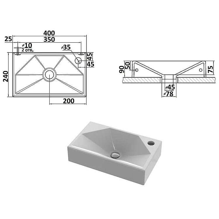 Умивальник «Меркурій» - це поєднання простоти та розкоші одночасно. Ця малогабаритна раковина стане відмінним доповненням навіть до найменшої ванної кімнати. Звичну, прямокутну форму умивальника, підкреслить його оригінальна чаша у вигляді граней.