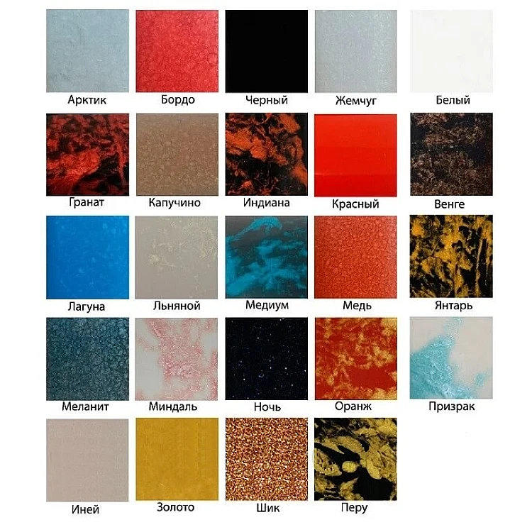- можливе виготовлення в однотонному кольорі, з різними кольоровими ефектами та включеннями;