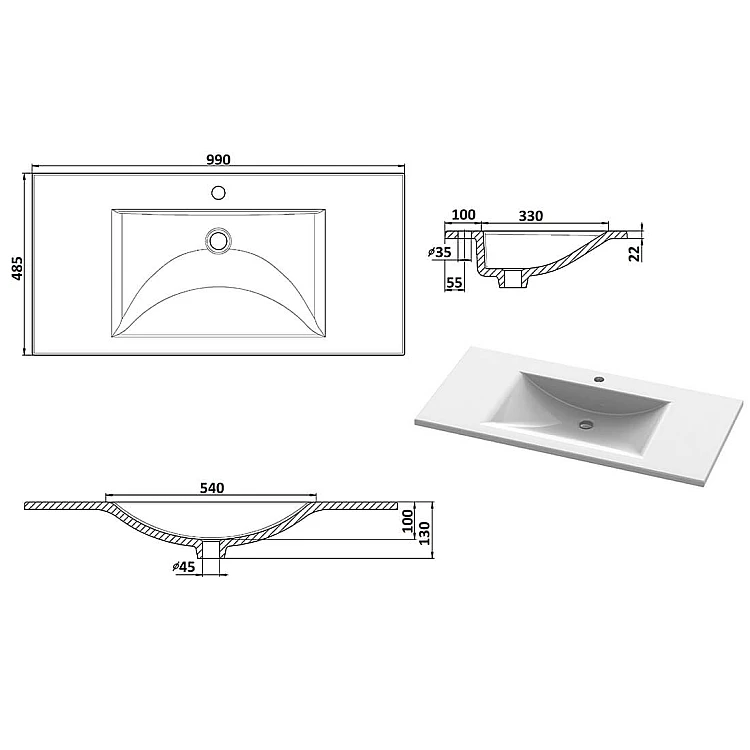 Характеристики - Умивальник Snail «Орфей» 99x48,5 (165Т307) привид