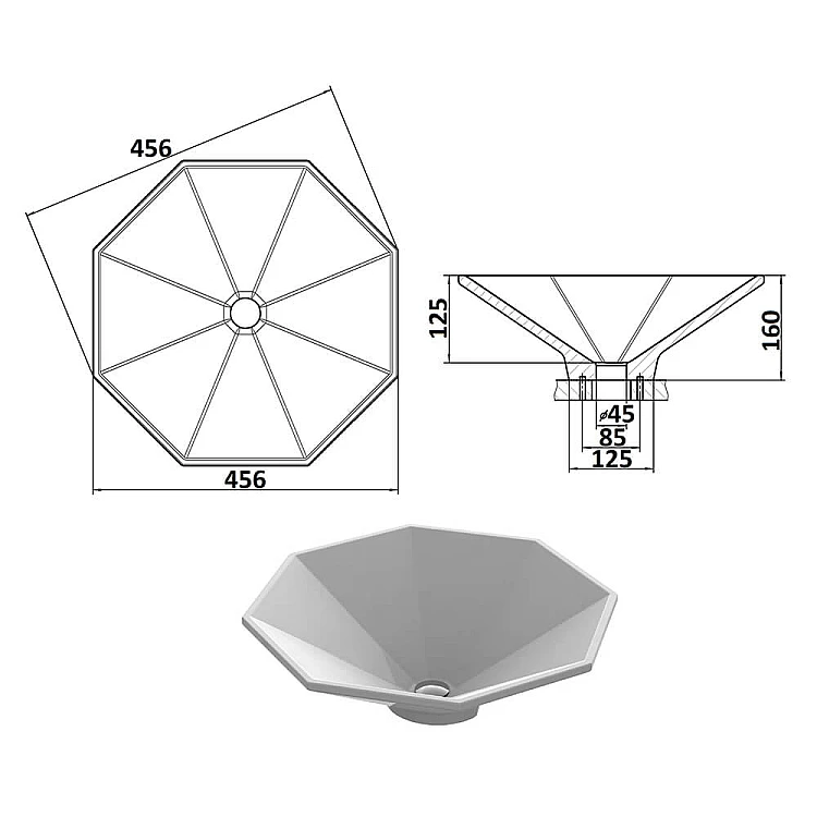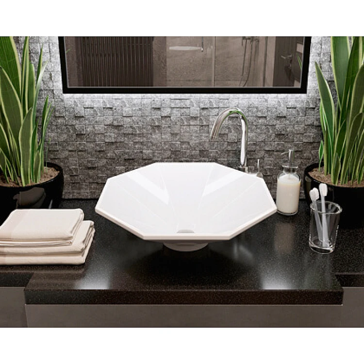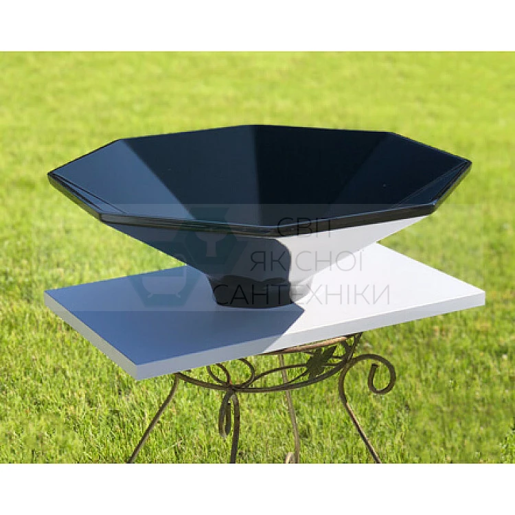 Умивальник «Сіріус» виконаний у вигляді восьмикутника, що виглядає дуже незвично і неординарно для сантехнічних виробів. Завдяки своїй унікальній формі умивальник «Сіріус» виглядає скоріше, як частина декору, ніж побутовий предмет. Його форма зі смаком доповнить розкішний інтер'єр Вашої ванної кімнати.