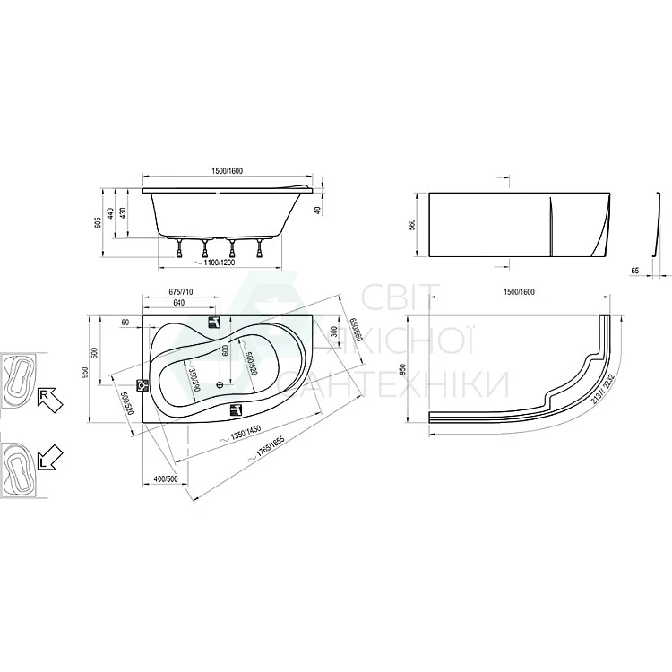 Опис товару - Ванна асиметрична 150х95 Ravak Rosa 95 C561000000 R - правостороння