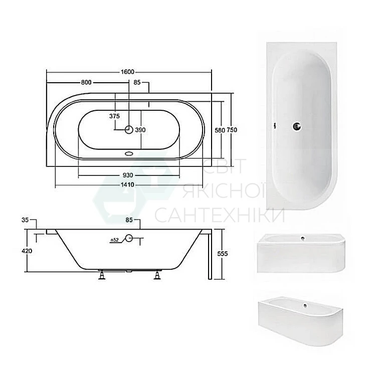 Ванна акрилова BESCO AVITA 160x75 (соло) без ніг