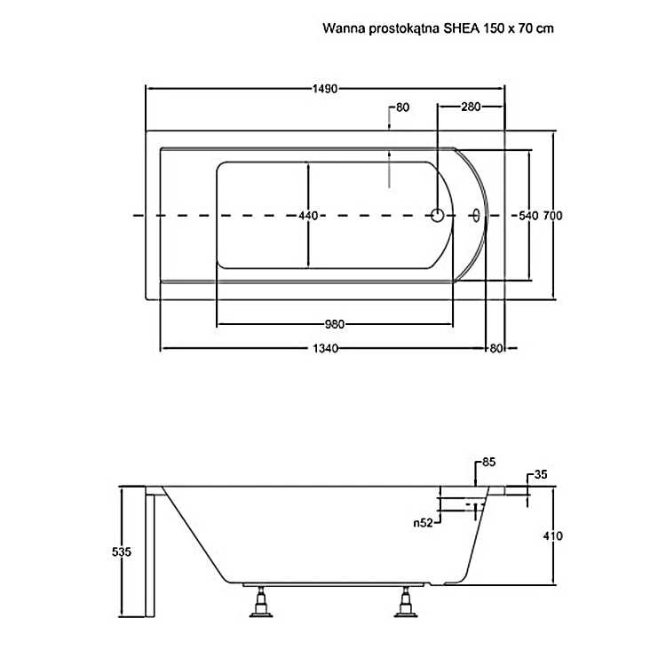 Ванна акрилова Shea 150х70 (соло) без ніг
