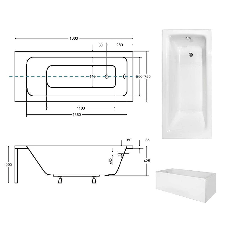 Ванна прямокутна BESCO TALIA 160x75 2027208