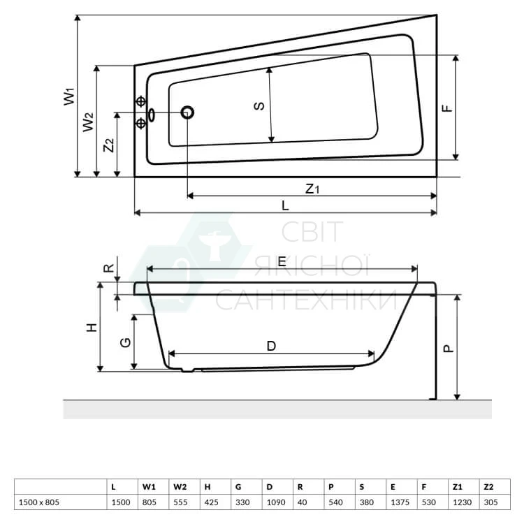Ванна акрилова кутова 1500x800 Excellent Ava Comfort ліва (WAEX.AVL15WH)