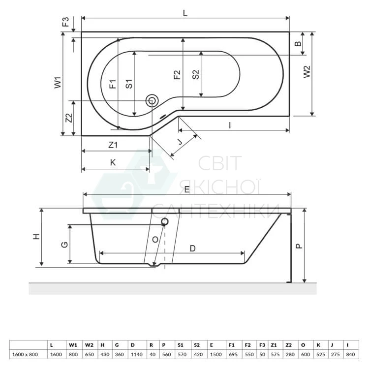 1600х800х560 мм