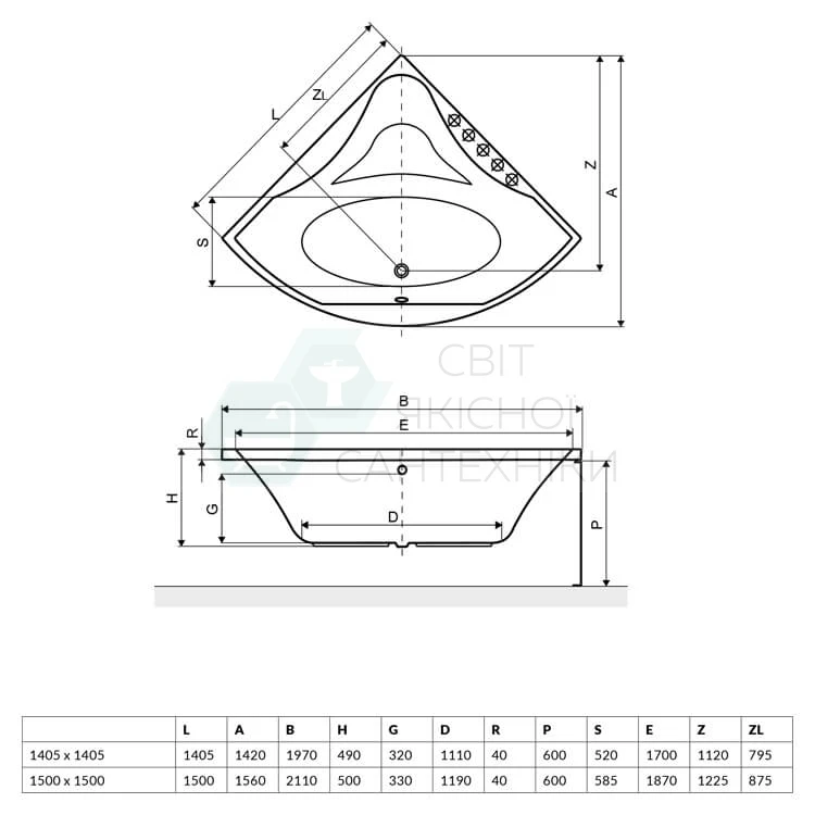 Ванна акрилова симетрична 1500x1500 Excellent Glamour (WAEX.GLA15WH)