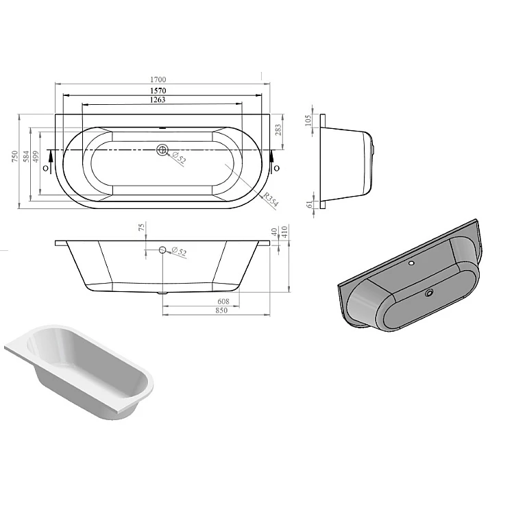 Отримайте AI поради по Ванна пристінна Koller Pool MIO 170x75
