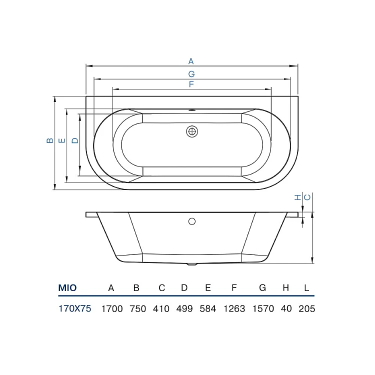 Ванна пристінна Koller Pool MIO 170x75