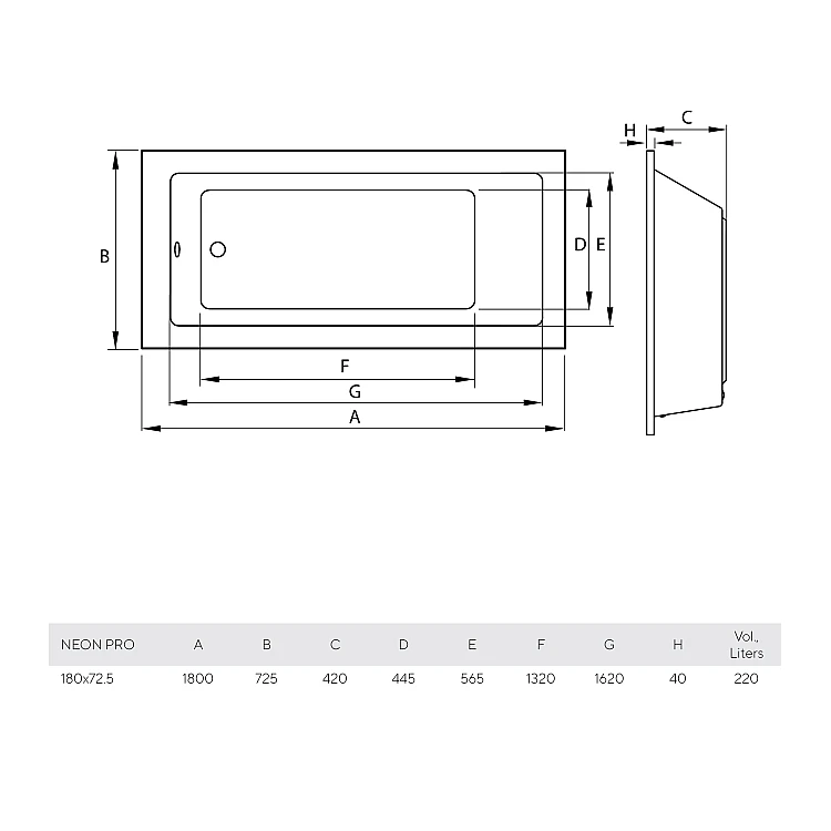Ванна Neon PRO 180х72,5