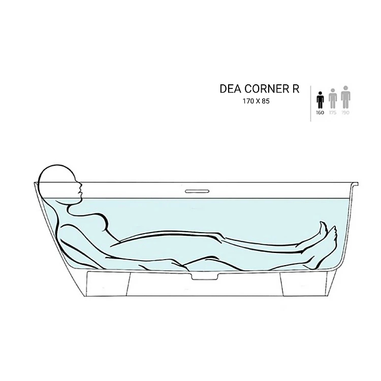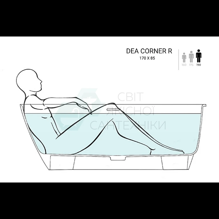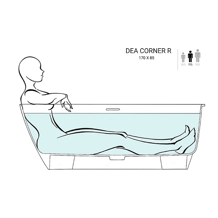 Ванна DEA CORNER R від WGT Water Stone — це кутова модифікація популярної моделі DEA, створена для максимально ефективного використання простору ванної кімнати. Завдяки кутовій конструкції модель дозволяє раціонально організувати інтер’єр, поєднуючи функціональність та сучасний дизайн.