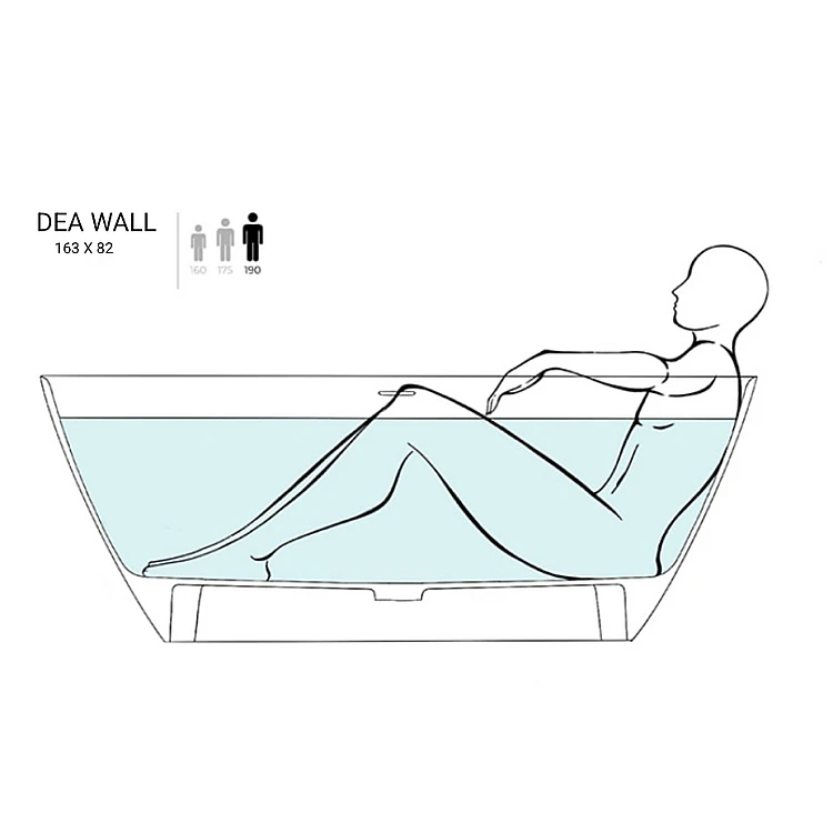 Ванна окремостояча пристінна WGT Water Stone DEA WALL 1630×820, Solid Surface, білий