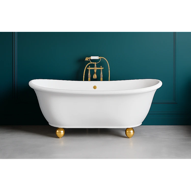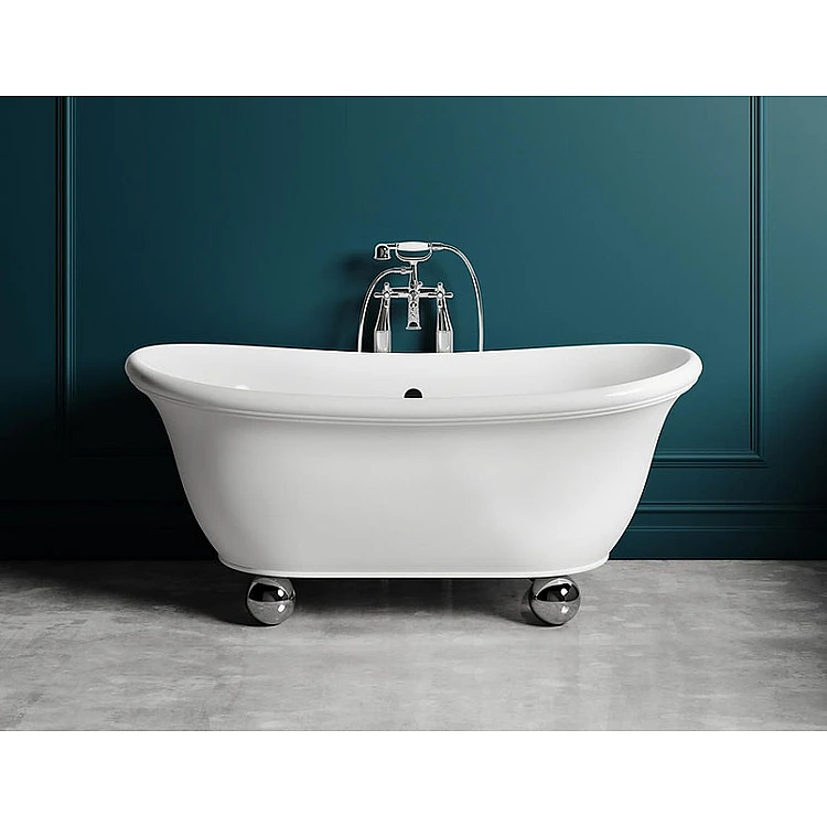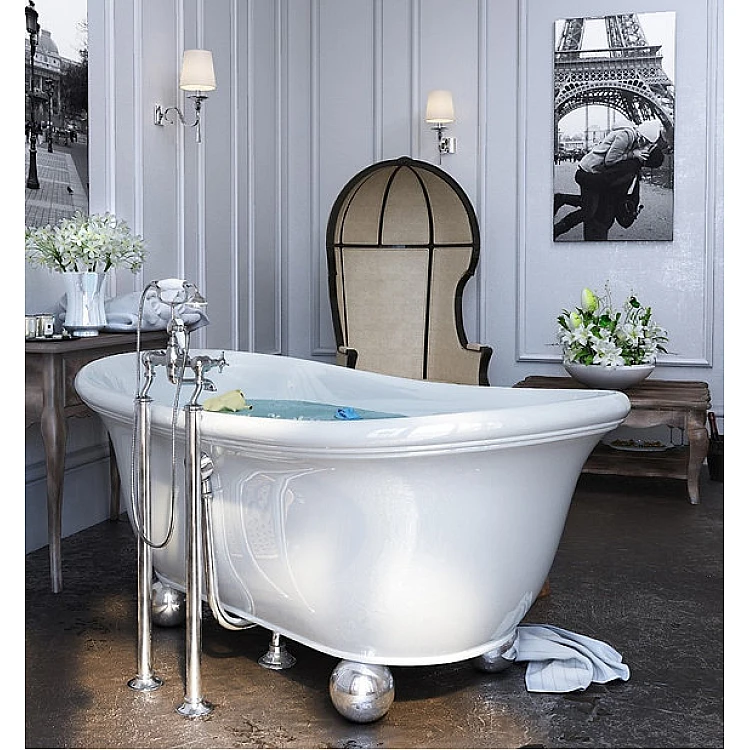 Ванна PALLA від WGT Water Stone — це окремостояча модель у класичному стилі, встановлена на декоративних ніжках у формі кулі з хромованим покриттям. Дизайн поєднує елегантність італійської класики XVIII століття та сучасні дизайнерські рішення, створюючи гармонійний баланс традицій та сучасності.