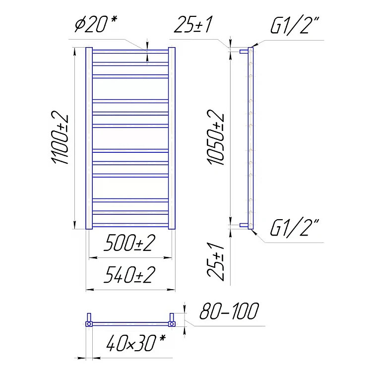 Характеристики - Водяна рушникосушка Mario Преміум Класік 1100x540/500 mar_87