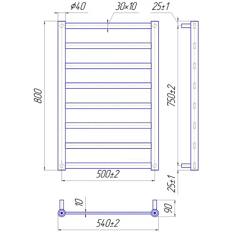 Характеристики - Водяна рушникосушка Mario Модена 800x540/500 mar_132