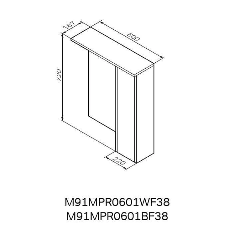 Дзеркальна шафка для ванної кімнати AM.PM GEM S M91MPR0601WF38 права
