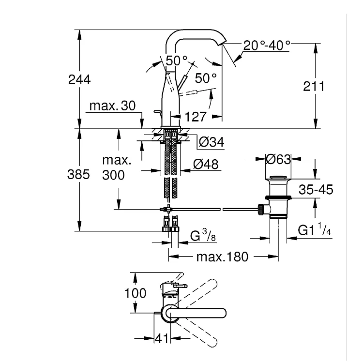 Змішувач для умивальника GROHE Essence L-Size, золото глянцеве, 24174GL1