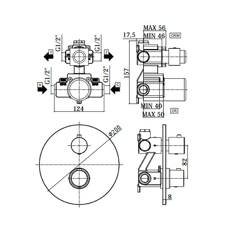 Змішувач для душу з термостатом на 2 споживача Paffoni Light LIQ018HGSP матове золото