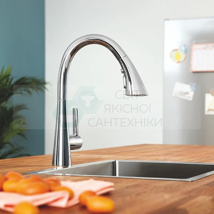 Характеристики - Змішувач для кухні з висувною лійкою Grohe Zedra 32294002 хром